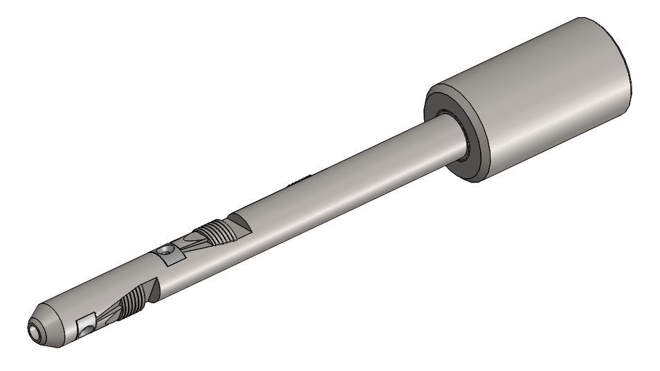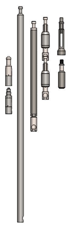 Инструмент представляет из себя золотниковый узел (желонку) с диаметром корпуса 73мм и присоединительной резьбой НКТ60. А так же пера имеющего в своем составе два шариковых клапана, контейнеры и острый пирамидальный наконечник.